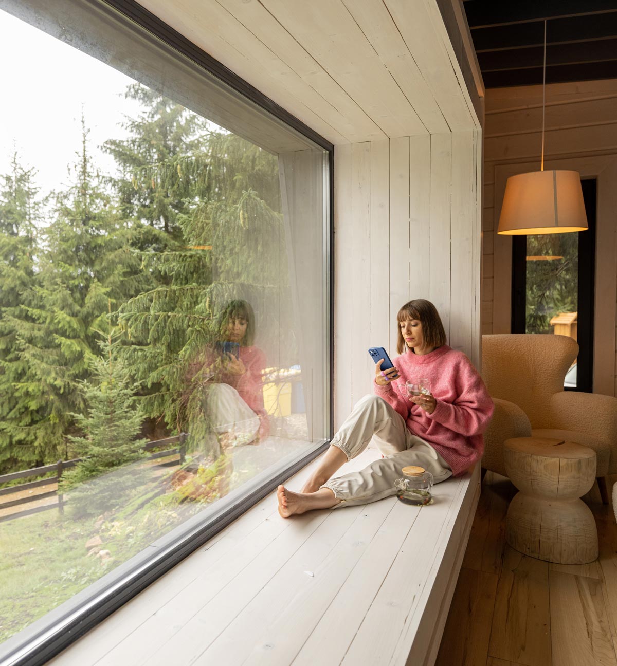 - Madera pino clear interior en muros y cielos