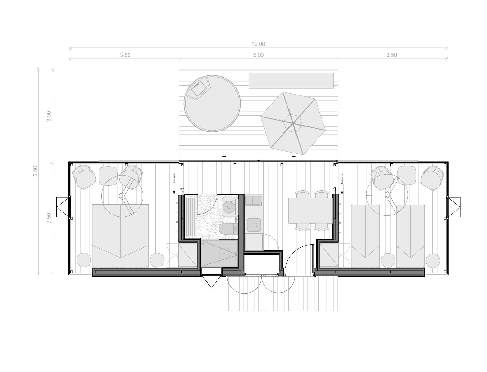 42 m2 interior + 15 m2 exterior