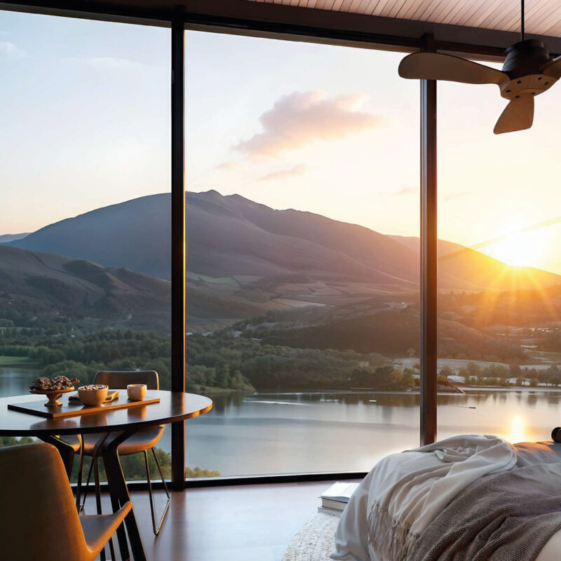 - Piel de vidrio en Termopanel Low-e (6/12/3+3) y ventanas en PVC color Negro